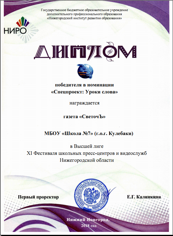 Приятно, что в этом году юные спортсмены нашей школы были отмечены дипломами исполняющего обязанности губернатора Нижегородской области Глеба Никитина.