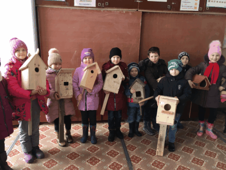 Первоклассники вместе с родителями изготовили и повесили в сквере школы 7 скворечников и кормушку.Теперь будем вести наблюдения за заселением птиц в изготовленные скворечники.