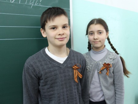 Для жителей микрорайона школы была проведена акция «Георгиевская ленточка».